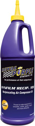 Royal Purple 12513 Synfilm Recip 100 High Performance Synthetic Air Compressor Lubricant - 12 Quart?Synfilm Recip. 100 is recommended for lubricating reciprocating air compressors (piston type). Synfilm Recip. 100 is a long life, high film strength, energy efficient, synthetic lubricant that significantly increases the reliability and efficiency of reciprocating air compressors and reciprocating shop compressors. It excels at reducing wear and keeping discharge valves free of harmful carbon deposits. Synfilm Recip. 100 forms a better seal and reduces friction between the cylinder wall and piston rings for greater compressor efficiency. It is formulated with Royal Purple's proprietary Synerlec additive technology, which is proven to make equipment run smoother, cooler, quieter, longer and more efficiently.