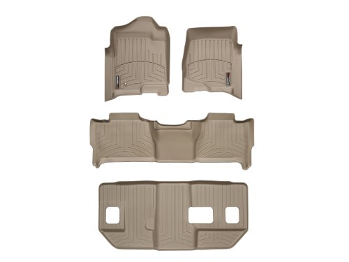 WeatherTech Custom Fit FloorLiner - GMC Yukon XL / Yukon Denali XL w/ Bench Seats - 2007-2010 - Complete Set (1st, 2nd, & 3rd Row) Tan